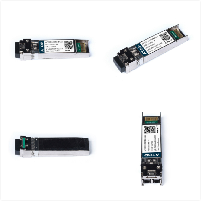 ATOP 25G DWDM系列光模块采用EML+APD 器件方案,目前有10km 以及30km传输距离可供客户选择。ATOP 在业内率先推出了支持C-band全波长和1286.66nm~1309.14nm O-band 8波 25G DWDM 系列光模块。